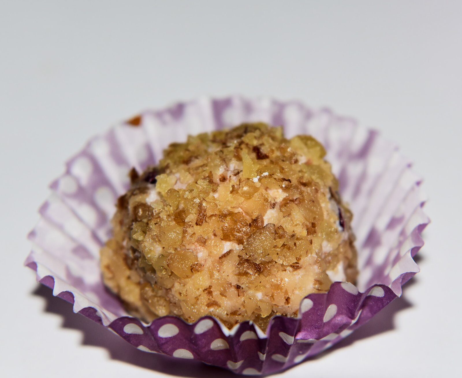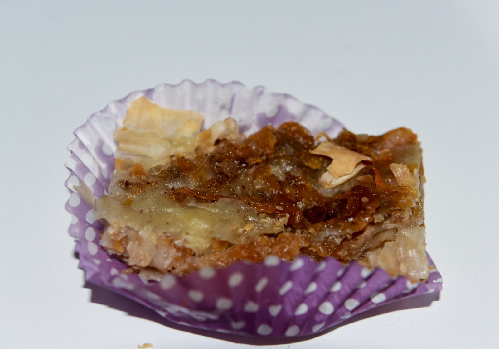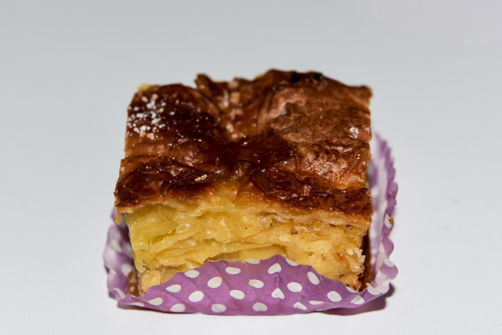 Съдържание: Парче домашна баница, тиквеник, солен трюфел с козе сирене и боровинки, солени бонбони с маслина, тарталета, меденка.