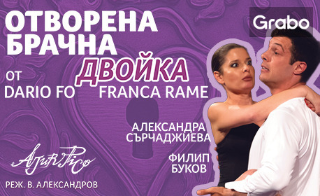 Александра Сърчаджиева и Филип Буков в спектакъла "Отворена брачна двойка" - на 30 Май от 15:00ч, в Театър "Сълза и смях"