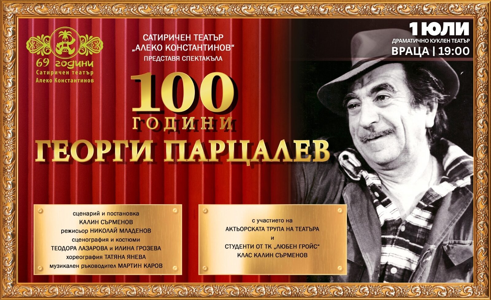 Спектакълът "100 години Георги Парцалев" е израз на почитта на трупата на Сатиричен театър "Алеко Константинов" към един от най-обичаните български актьори, свързал творчеството си с театъра.