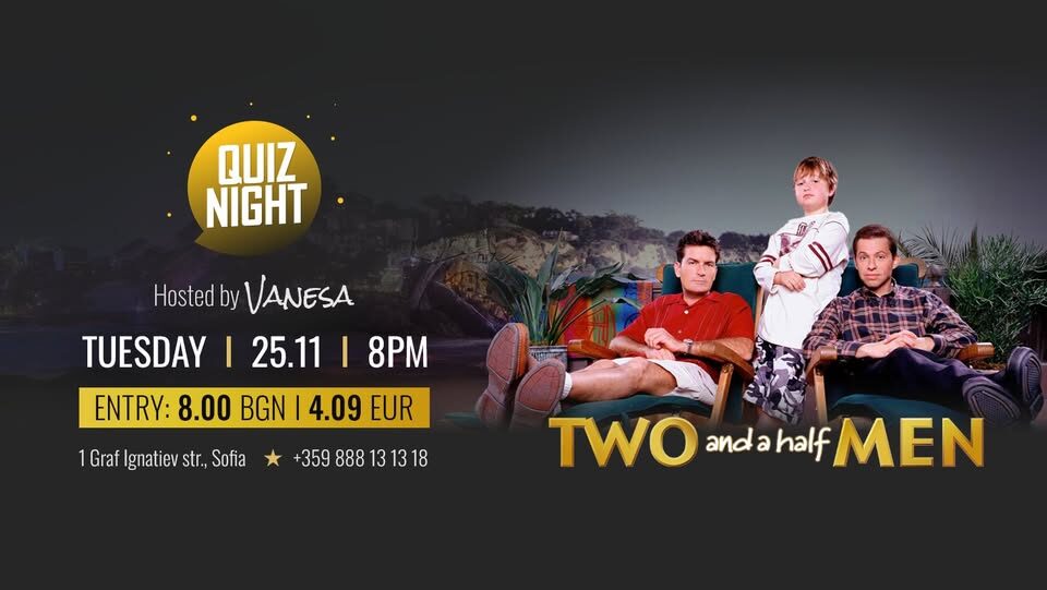 | Two and a Half Man Quiz на 25 Ноември от 20:00ч, в Клуб Rock'n'Rolla | 6.00 лв/3.07 € вместо 8.00 лв/4.09 € | Грабни |