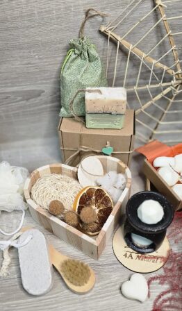 И за да е пълно удоволствието към комплекта спа комфорт ви подаряват красива арома каминка и восъчни дражета (8 бр), с аромат на джинджифил, лимон и лимонена трева.