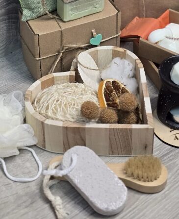 Подаръчен комплект за SPA комфорт "Енергия в мехурчета", плюс подарък - арома каминка и восъчни дражета с аромат на джинджифил, лимон и лимонена трева, от 4A Natural