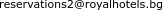 - С предварителна резервация на: 088 64* **** (покажи) (всеки ден от 09:00 - 21:00ч) или на: reservations2@royalhotels.bg. Направена резервация се потвърждава с номер на ваучер и секретен код.