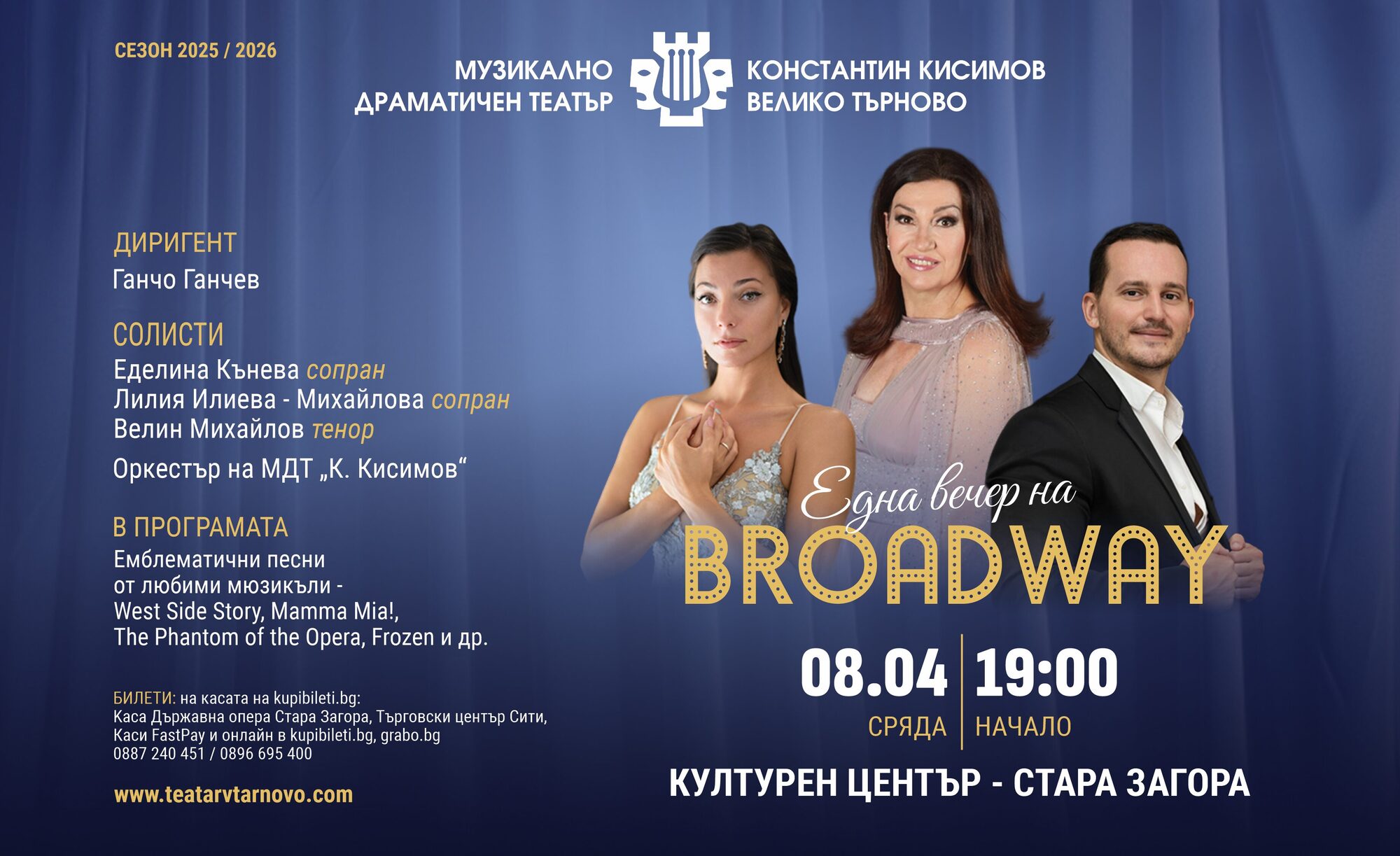 Концертът "Една вечер на Broadway" на 8 Април, в Културен център - Стара Загора