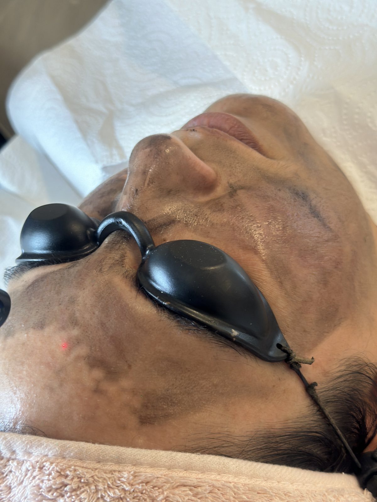 • Върху кожата се нанася течна карбонова суспензия (наночастици въглерод).