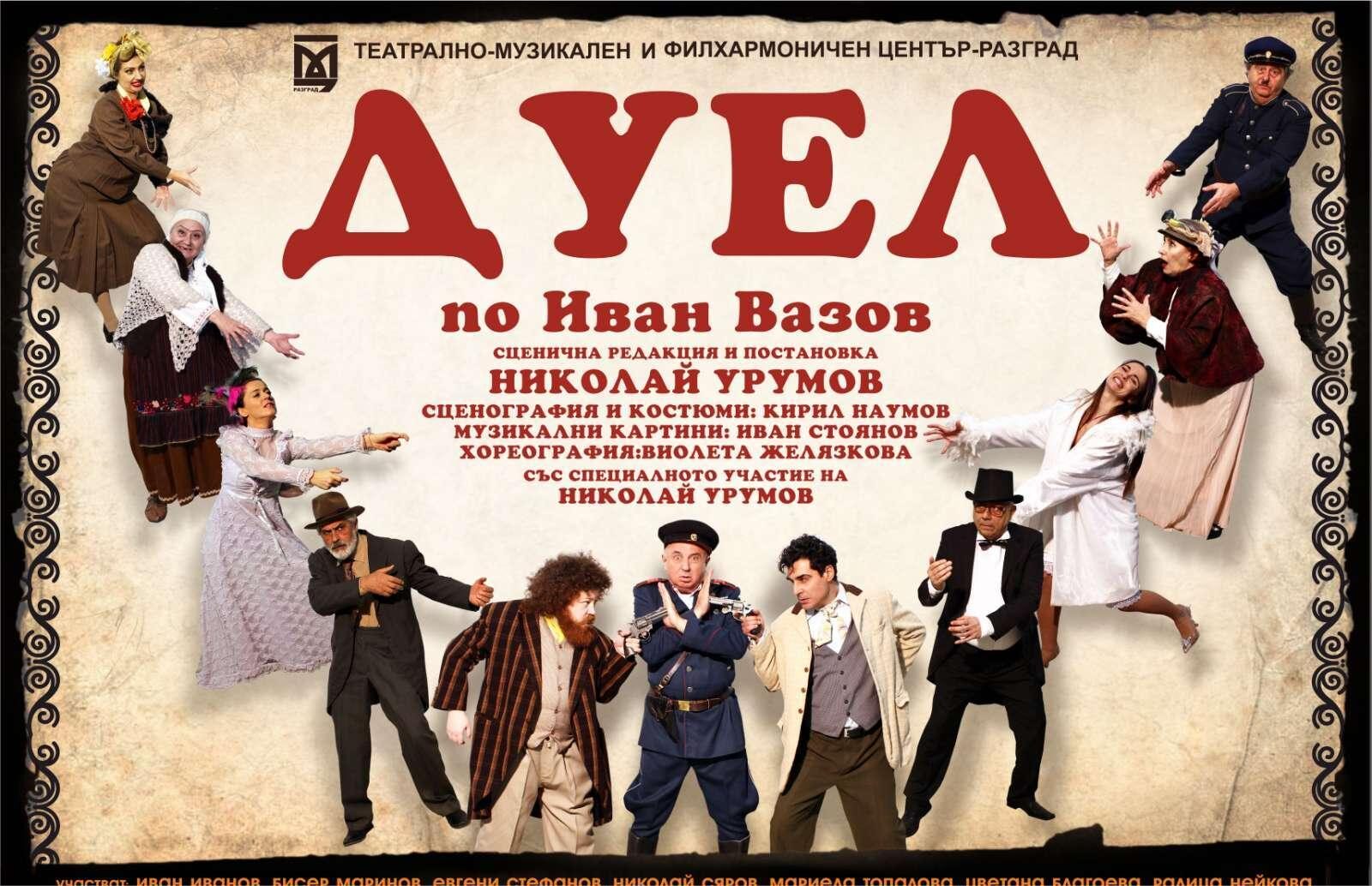 Гръмове и ревове! Смях и кикот! Във въздуха се носят миризма на динамит и парфюми! Летят обиди и закани, гащи и сутиени. Някой иска да вдигне във въздуха къщата на финансовия министър. Полицията безуспешно го дири! Звучи ви познато, нали? Не, това не са новините от вашия телевизор! Това е комедията "Дуел" по Вазовия "Двубой"! Една забавна и безумно смешна история, завихрена от порива на смеха и комичните ситуации, които ни поднасят вечните Вазови герои и блестящите актьори от Разградския театър!