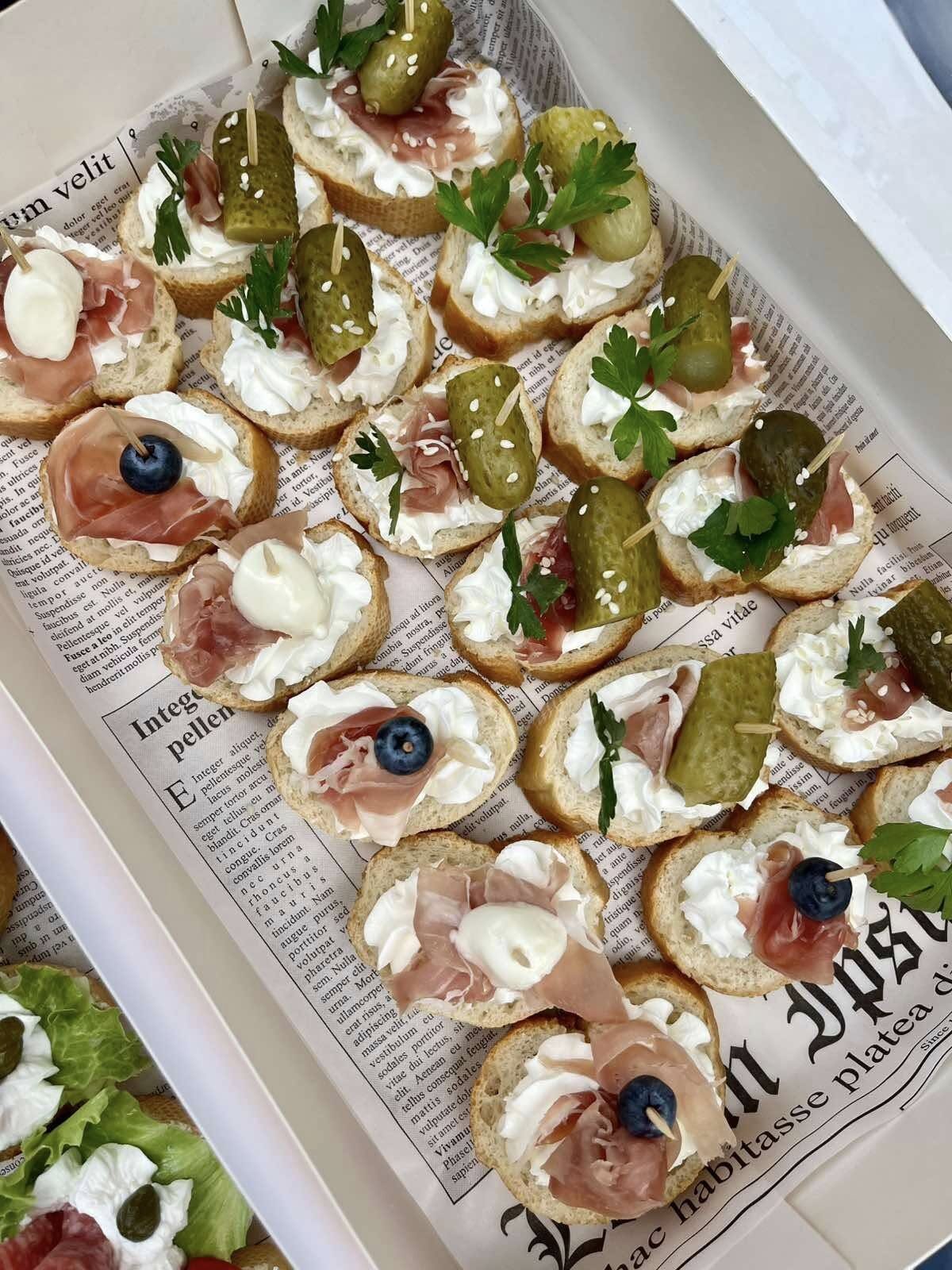 • Мини сандвичи с крема сирене, Прошуто и кисела краставица - 10 броя;