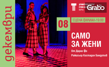 | Постановката "Само за жени" на 8 Декември от 19:00ч, на Сцена Филиал в Драматичен театър "Стоян Бъчваров" | 16.00 лв/8.18 € вместо 20.00 лв/10.23 € | Грабни |