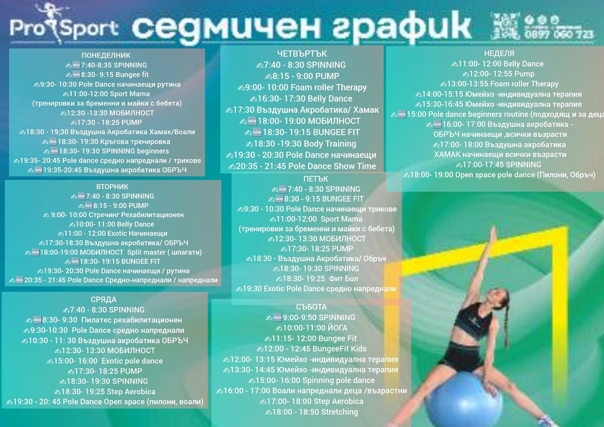 - Актуалният график за всеки вид тренировки е публикуван като снимка в началото на галерията на офертата.