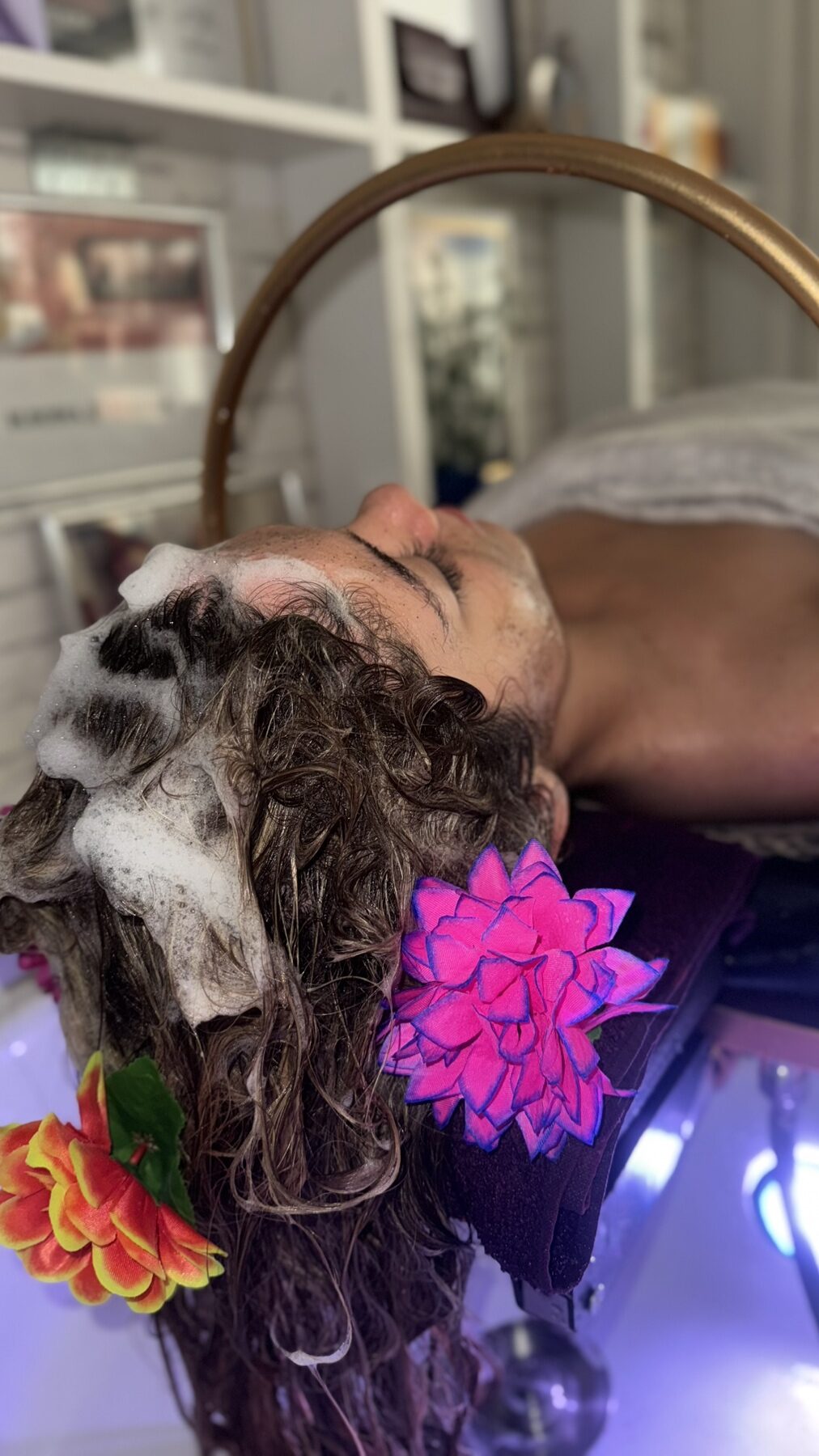 Този ритуал съчетава масаж, ароматерапия и терапевтични грижи за скалпа, насочена към подобряване на здравето и външния вид на косата. Това невероятно преживяване комбинира различни техники за релаксация и грижа за косата, скалпа, лицето, шията и деколтето, с цел подобряване на общото благосъстояние и дълбока детоксикация.