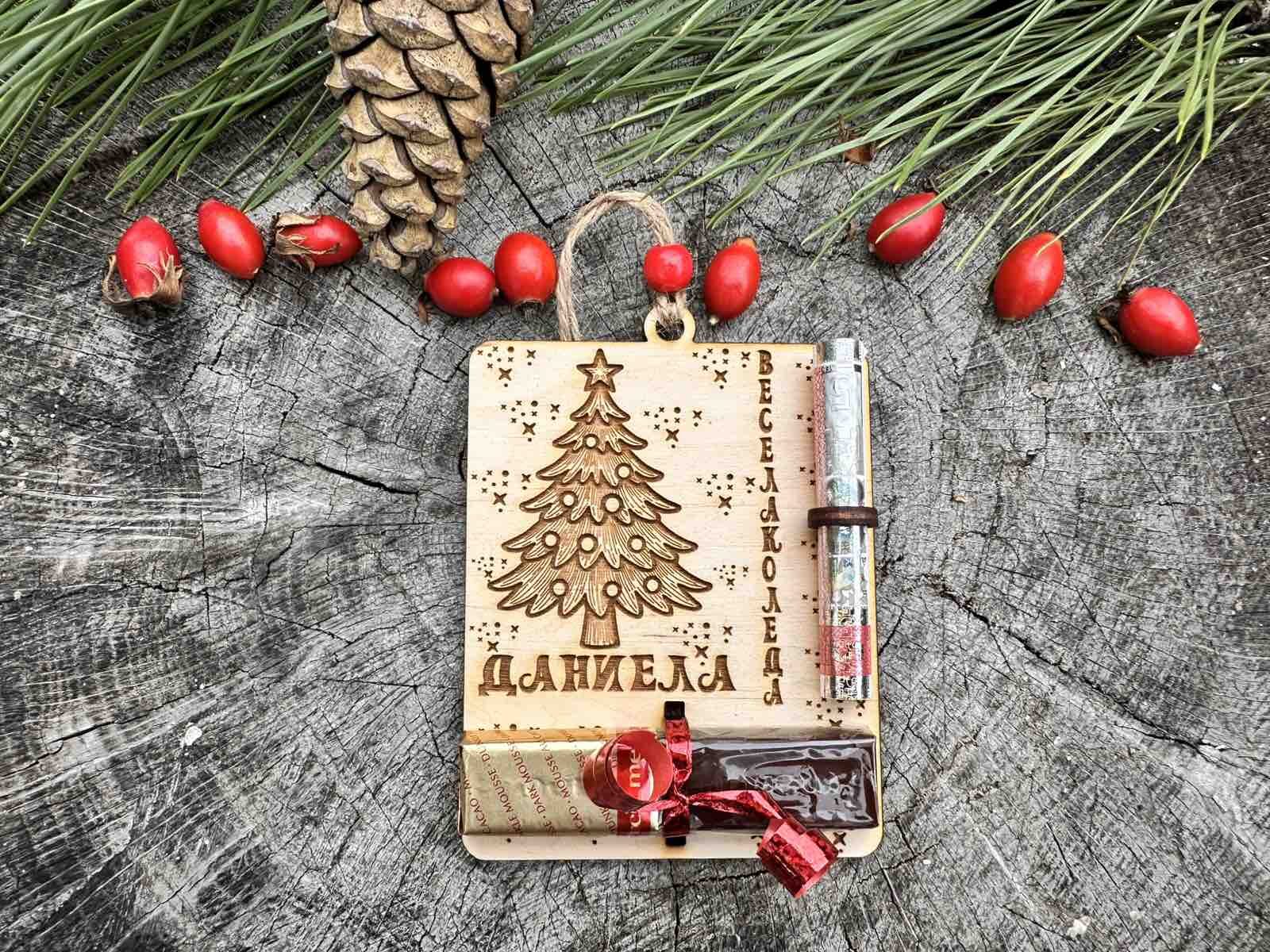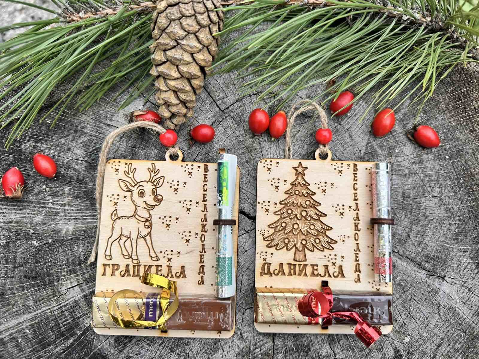2 брой висулки за елха с място за банкнота и бонбон (с дизайн по избор) | 9.90 лв/5.06 € | Грабни |