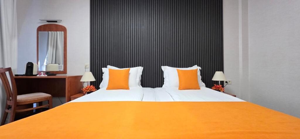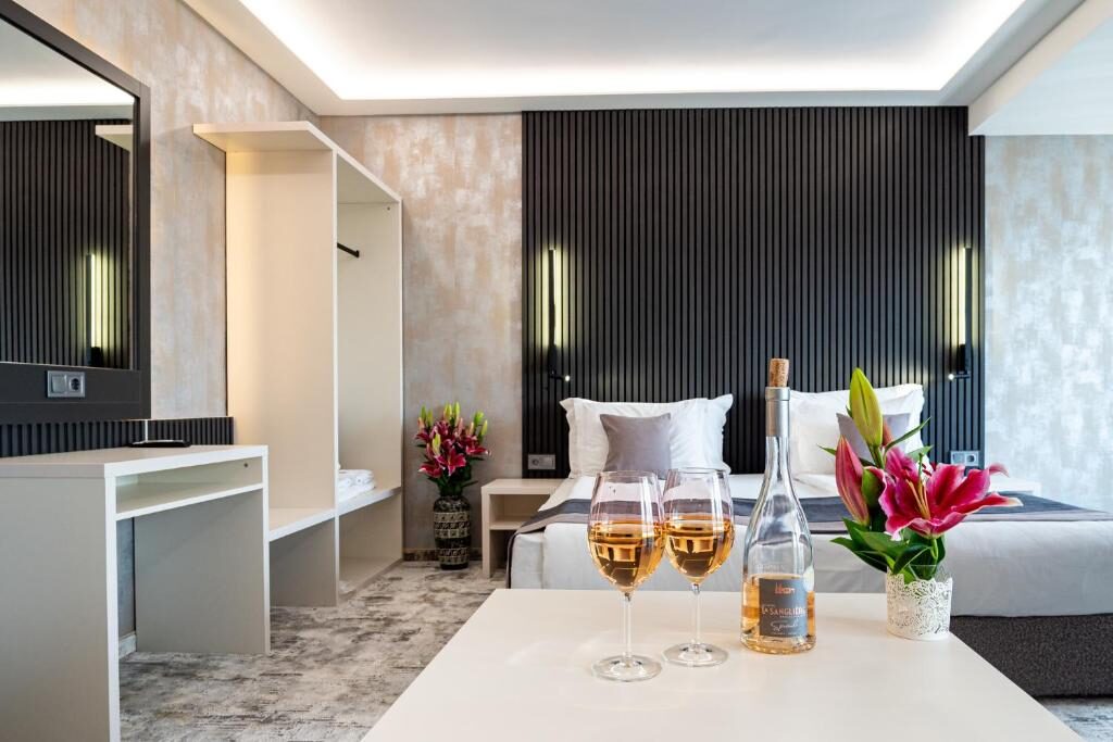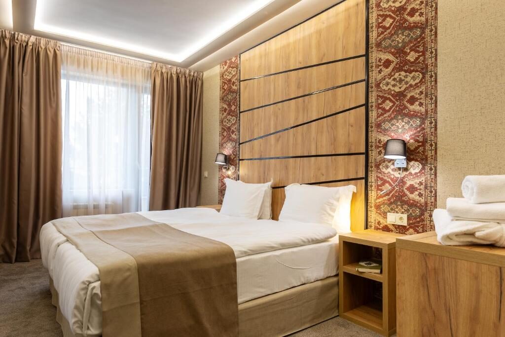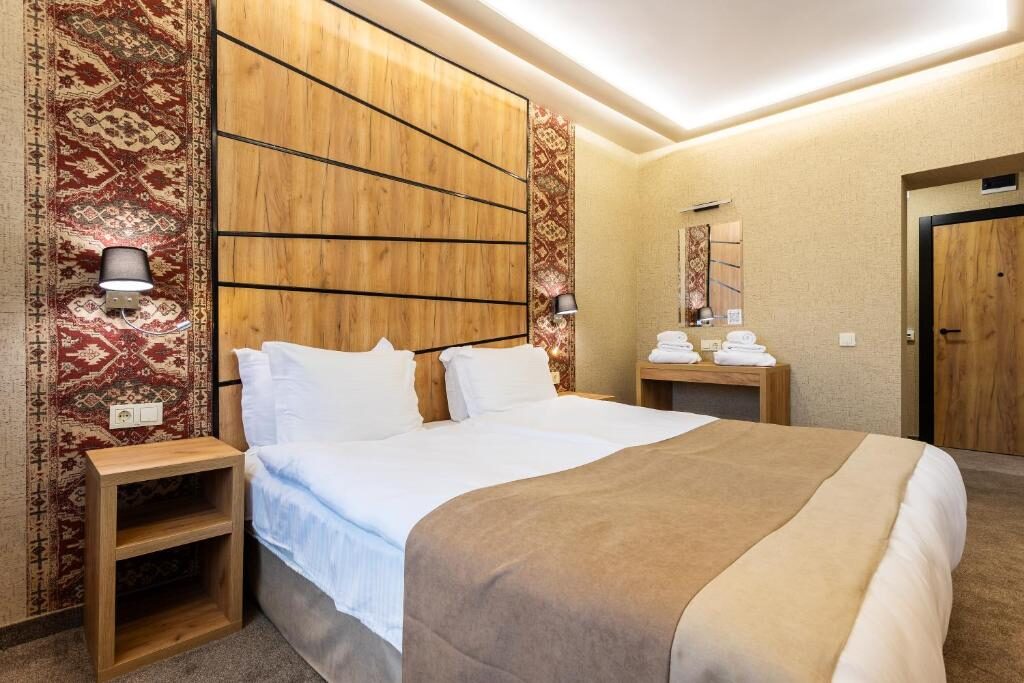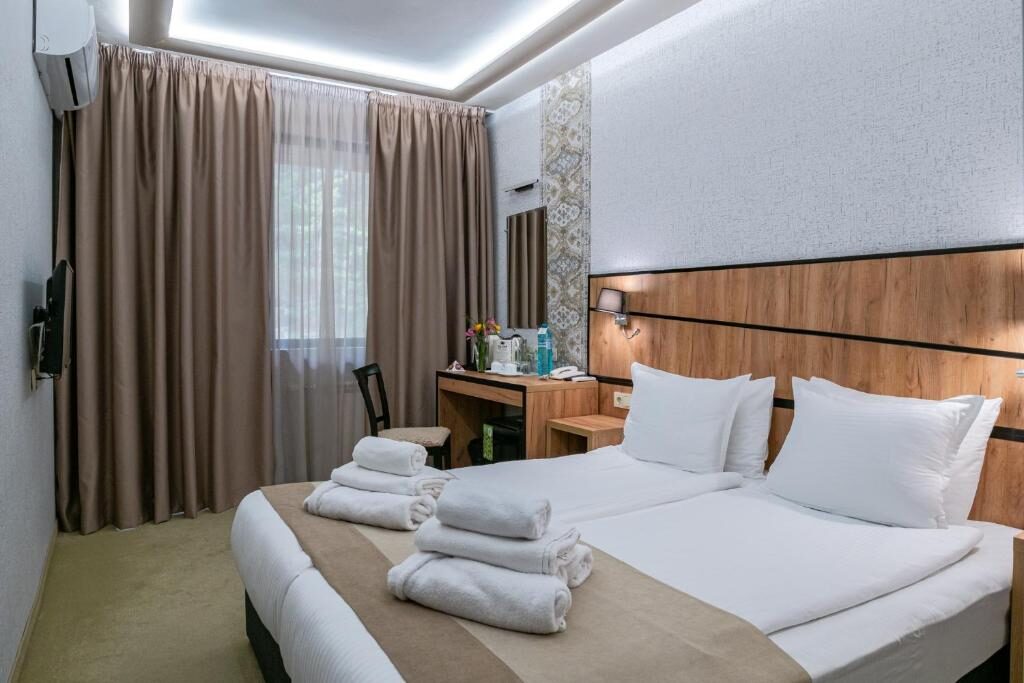 Удобства: Минибар, кафе машина, сешоар, климатик и парно отопление, телевизор, телефон, висoкоскоростен Wi-Fi.