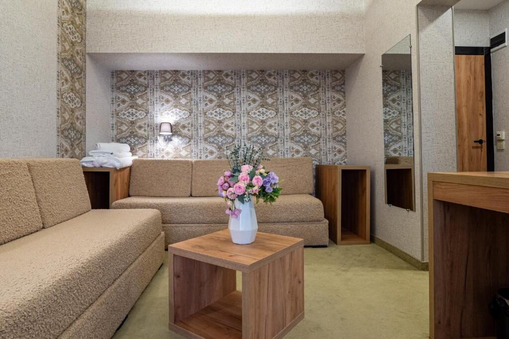 Част от Двойните стаи предлагат възможност за настаняване на трети гост. Капацитет: Двойно легло 180/200 + 1 бр. диван тип единично легло 90/190