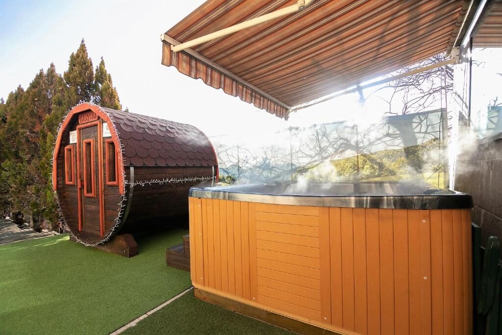 Външният басейн с минерално топило (37°-38°) е идеалното водно допълнение и атракция през студените зимни дни (35°-37°).