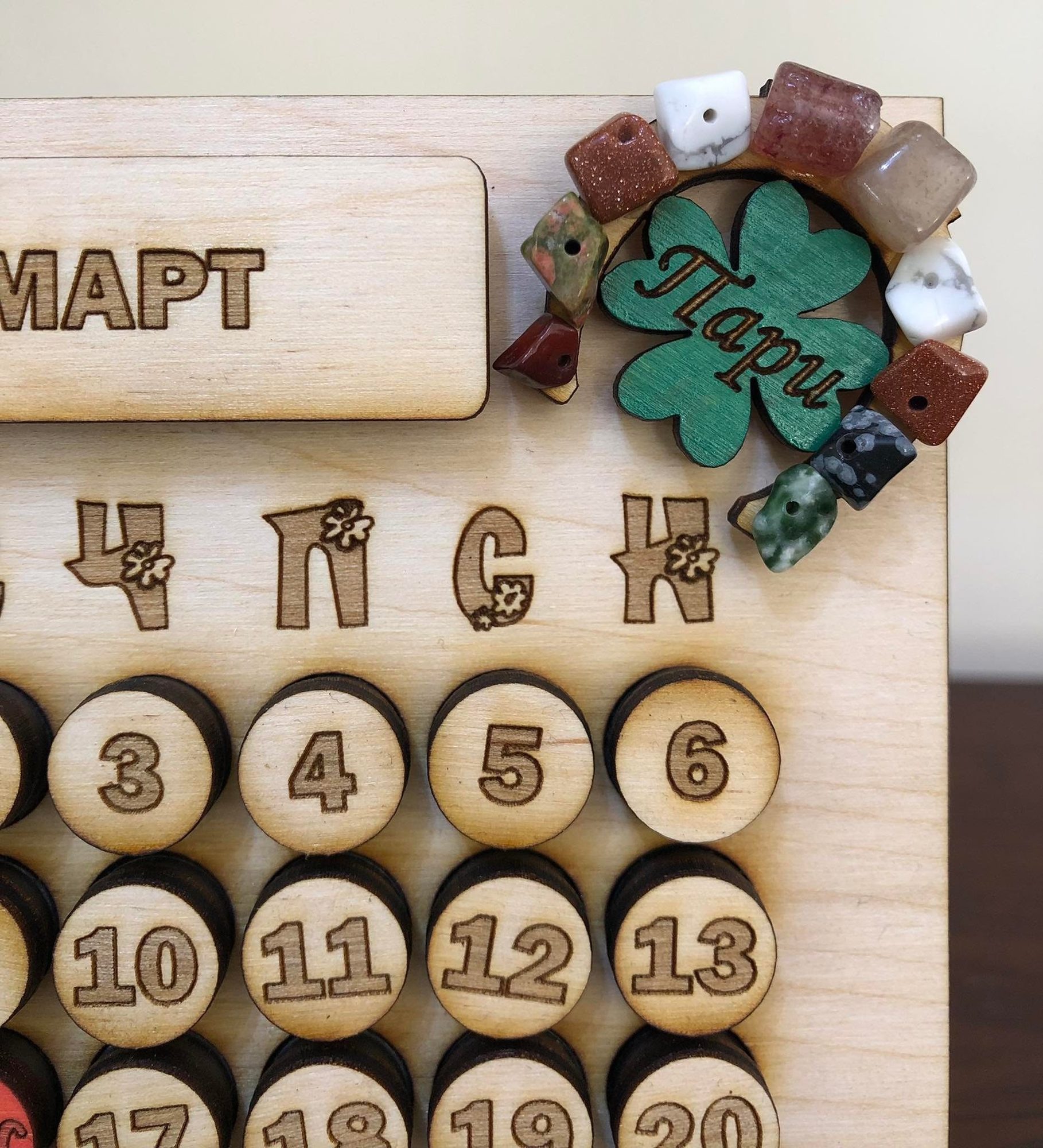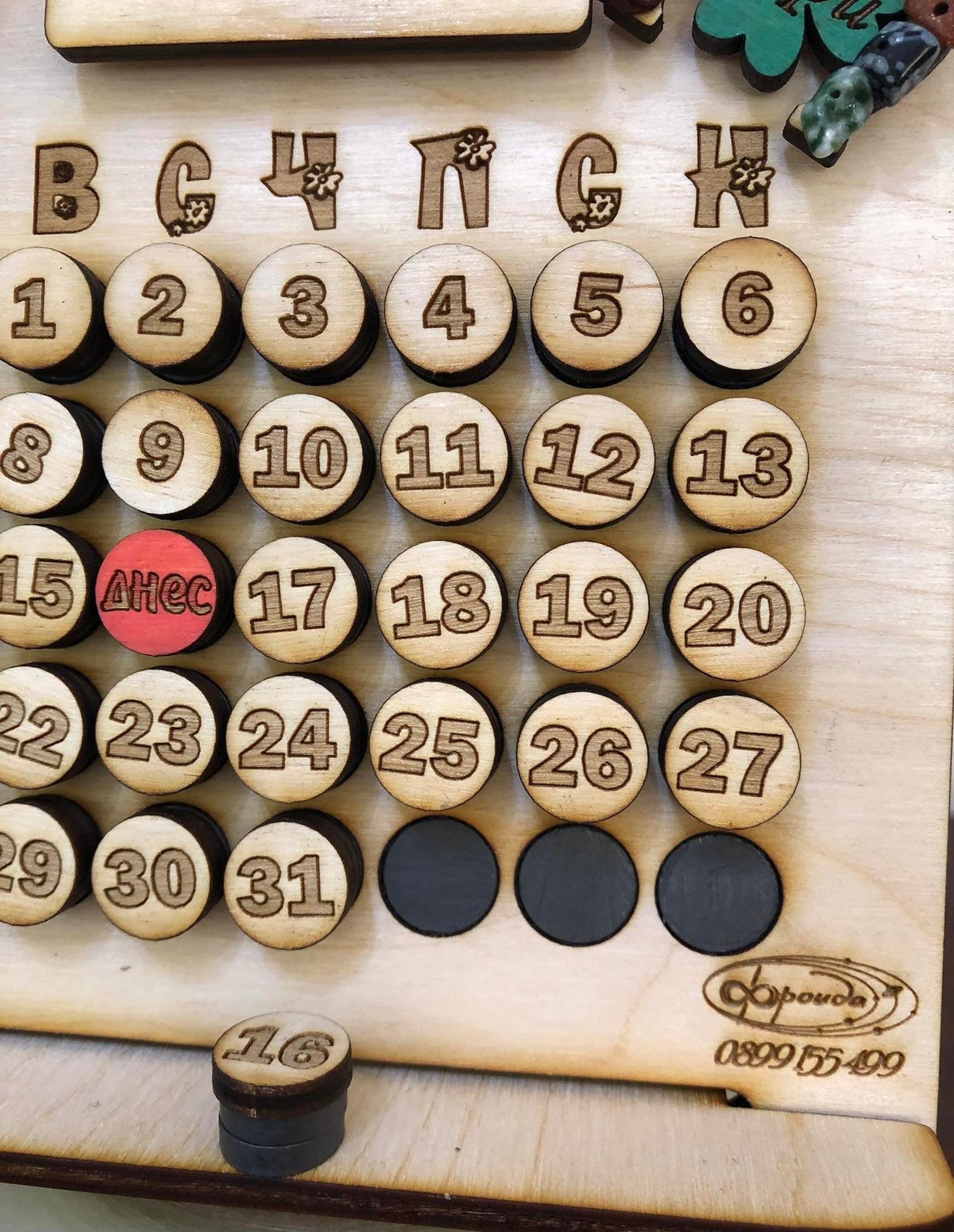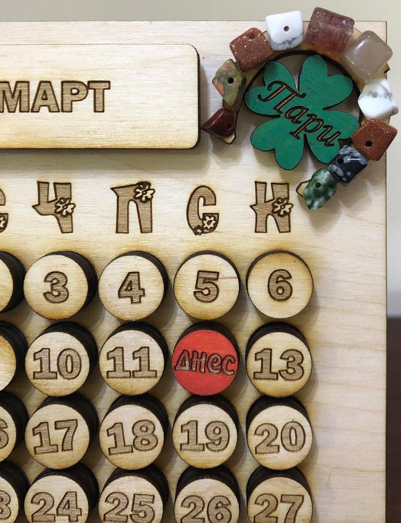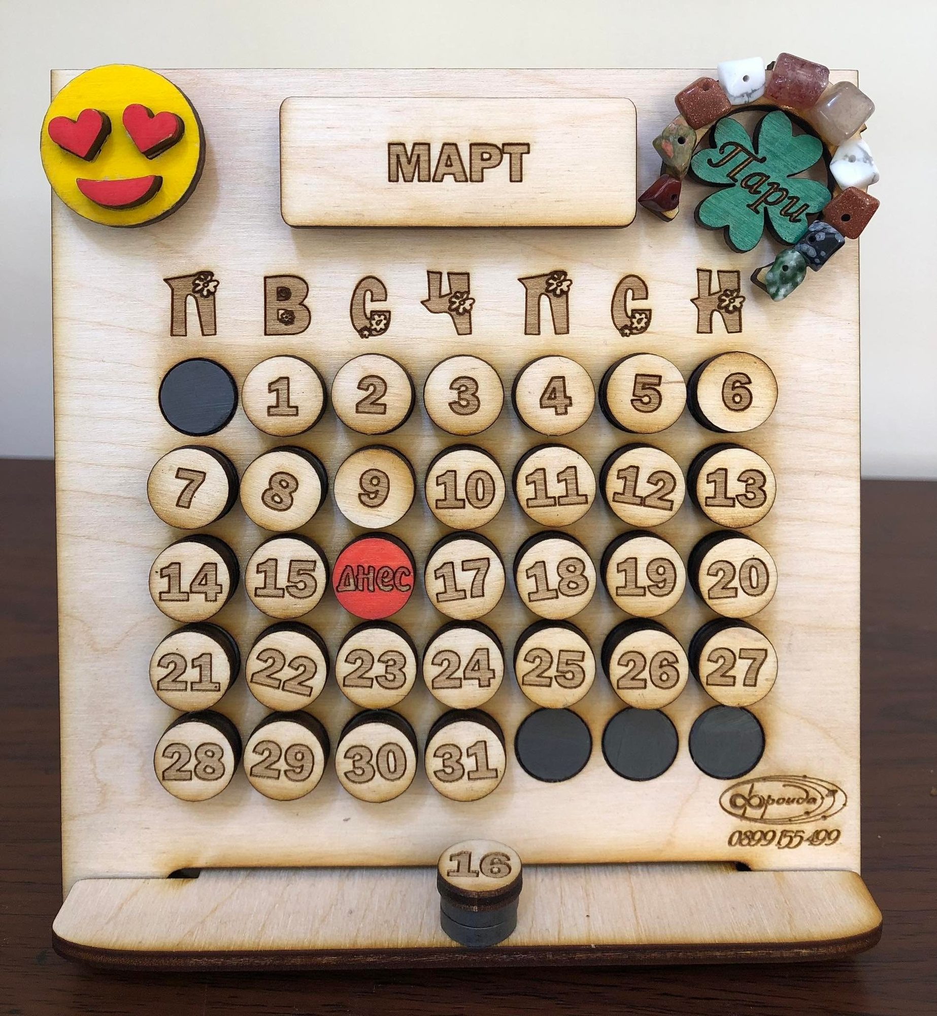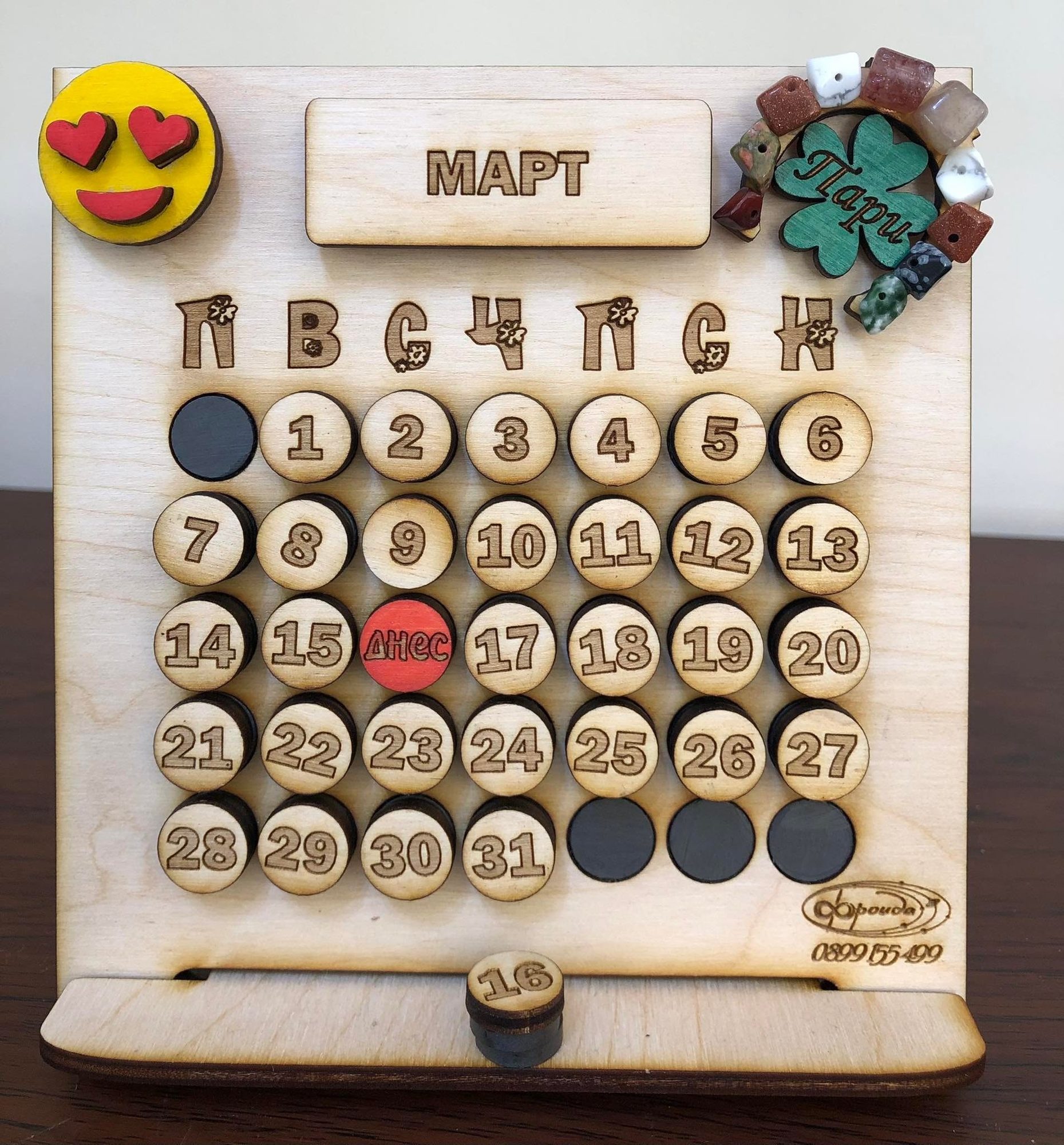 Настолен вечен календар от дърво с талисман, плюс персонализирано послание