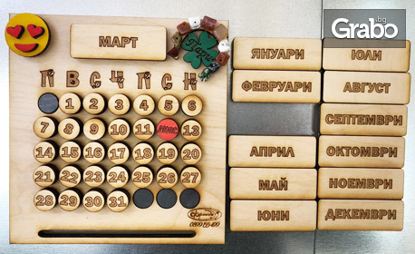 | Настолен вечен календар от дърво с талисман (130х136мм), плюс персонализирано послание | 18.87 €/36.90 лв | Разграбено |
