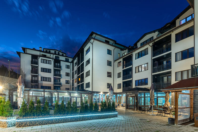 Апартхотел Роял Банско*** разполага със сто апартамента, разположени в един основен блок с четири асансьора. По-голямата част от тях предлагат неповторима гледка към планините Пирин, Рила и Родопи.