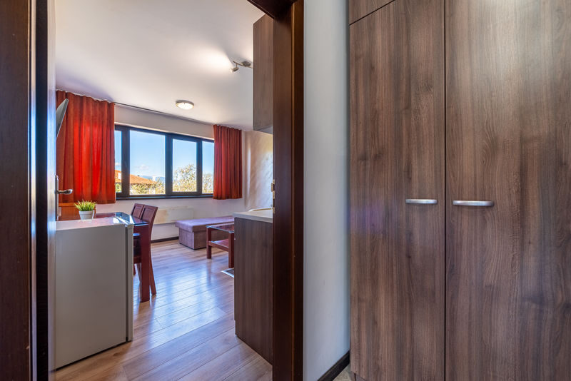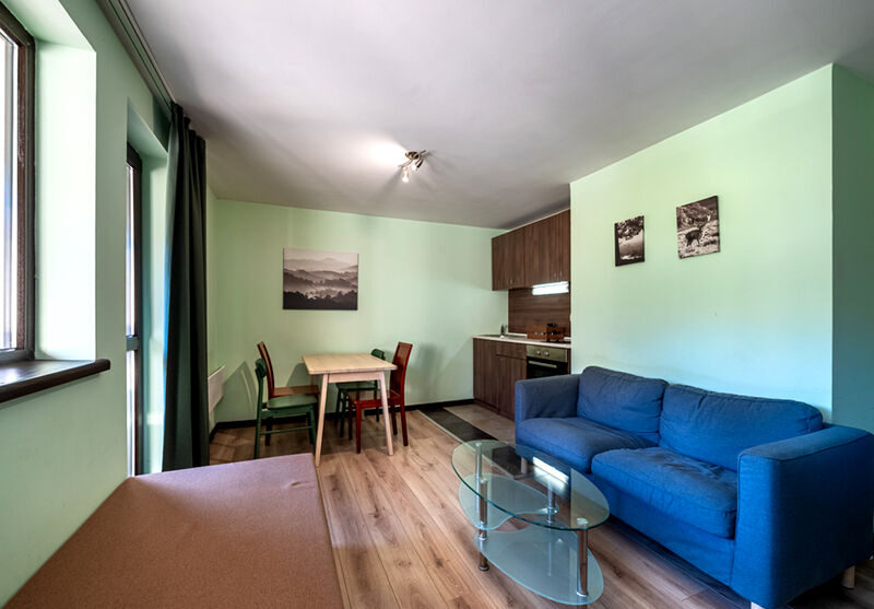 Едноспалните апартаменти се състоят от една спалня, хол и баня. В хола има диван, на който може да се настани дете. Отоплението е гарантирано с висок клас електрически конвектори Adax. Апартаментите са снабдени с високоскоростен интернет Ubiquiti U6 Long Range. Телевизията в хола има огромен избор от канали. Всички помещения разполагат с тераса. Апартаментите са оборудвани с хладилник и кана за топла вода. Баните са с душ кабина, а водата се подгрява с бойлер.