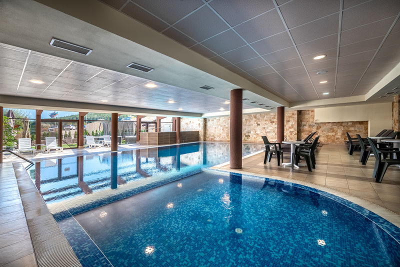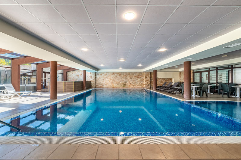 Гостите могат да ползват панорамен отопляем басейн с детска секция, вътрешно отопляемо джакузи, две външни отопляеми джакузита, сауна, парна баня, шоково ведро, масажен кабинет, фитнес, детски кът, два ресторанта, лоби бар, игрална зала, тенис на маса, билярд, барбекю, открит паркинг, безжичен интернет и външно мултифункционално игрище за тенис на корт, футбол и волейбол.