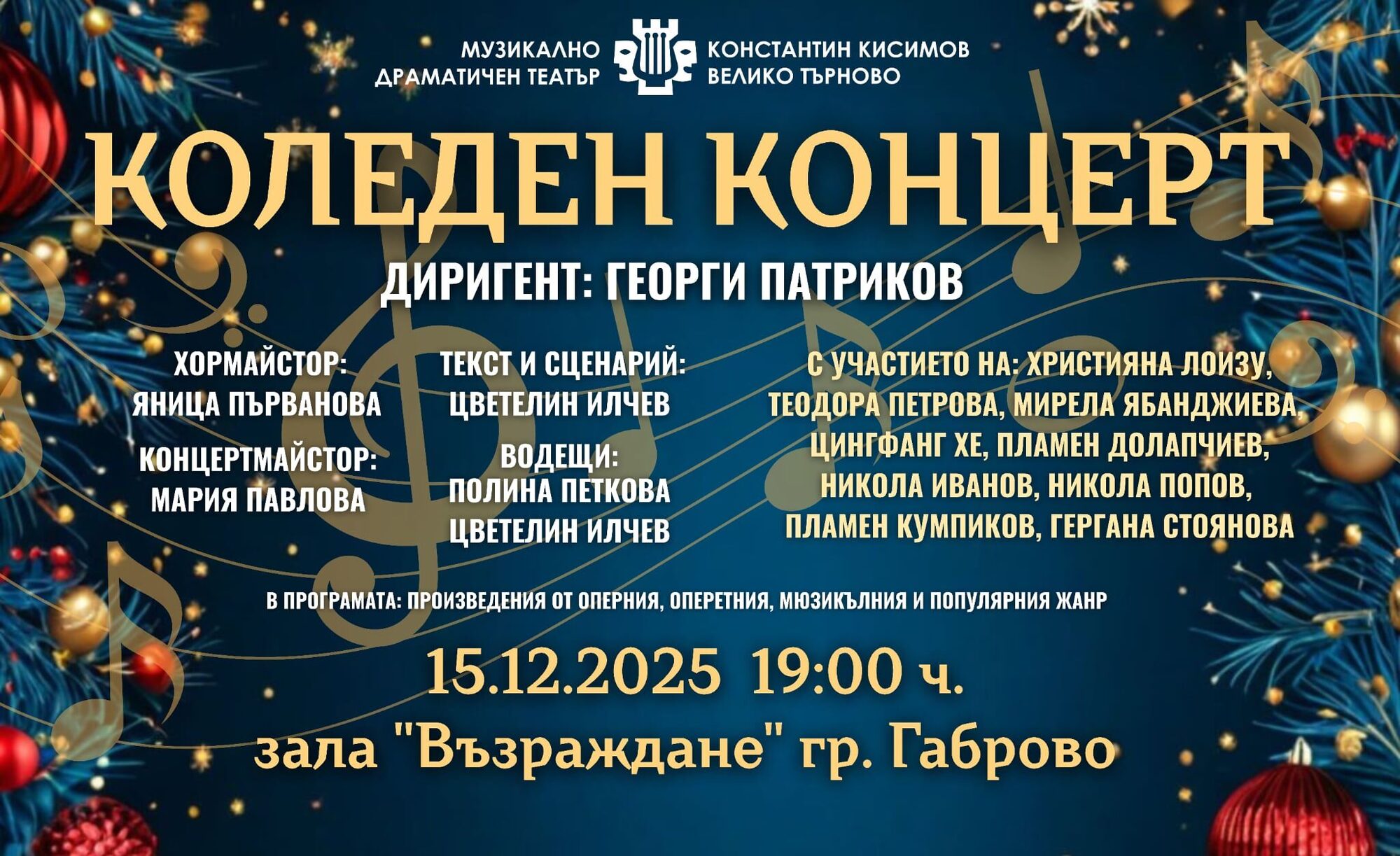 В традиционния коледен концерт Музикално-драматичен театър "Константин Кисимов" Велико Търново ще поднесе на своите гости пъстра програма от най-обичаните арии от