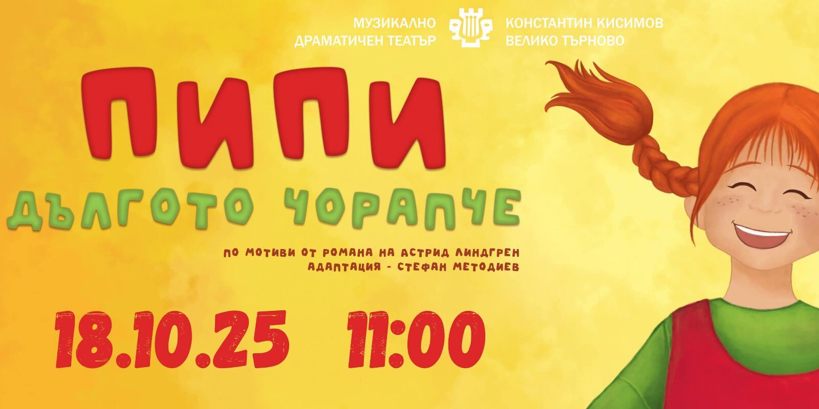 Детският спектакъл "Пипи дългото чорапче" на 18 Октомври в МДТ "Константин Кисимов"