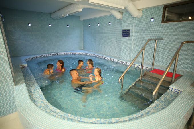басейн със солена вода, релакс зона с тепидариум) - 9 евро на човек на ден;